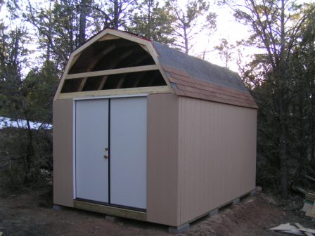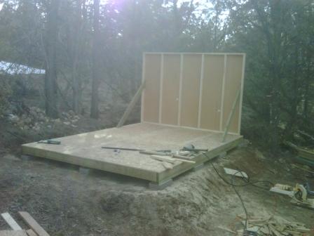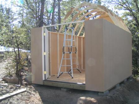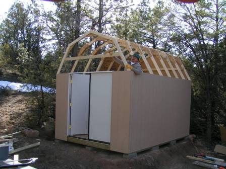 The foundation, floor, walls, roofing and rock retaining wall could be done alone, but the trusses were definitely a 2 person job. My friend Dave stopped by over the weekend and helped with the trusses. (Thanks Dave - I couldn't have done it without you)